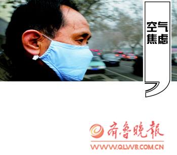 ▲29日,濟南籠罩在霧霾中,市民戴口罩出行。本報記者陳文進攝