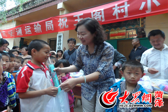 菏澤市交通運(yùn)輸局港航局副局長(zhǎng)、駐曹縣磚廟鎮(zhèn)“第一書記”工作組組長(zhǎng)曹燕給孩子發(fā)節(jié)日禮物,并囑咐孩子要好好學(xué)習(xí)