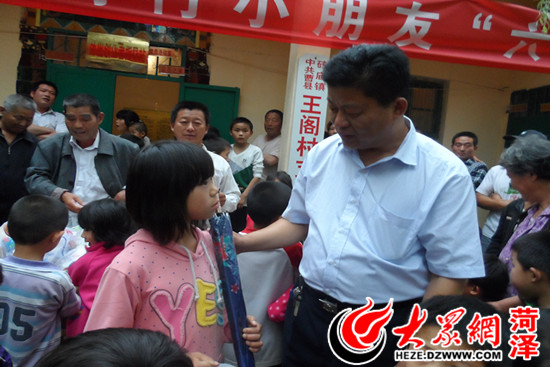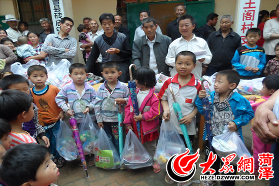 大眾網(wǎng)菏澤5月28日訊(實(shí)習(xí)生 馮全紅)六一兒童節(jié)馬上到來(lái)之際,今天下午六點(diǎn)半,曹縣磚廟鎮(zhèn)王閣村、王樓村的203名兒童收到了“第一書記”送的10多種節(jié)日禮物。雨傘、水壺、跳繩、橡皮泥、字帖還有水彩筆,收到這個(gè)“大禮包”的小朋友們非常開(kāi)心。