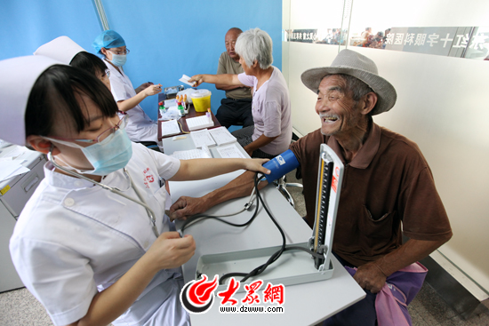 護士為村民測量血壓。見習記者楊春衛(wèi) 攝
