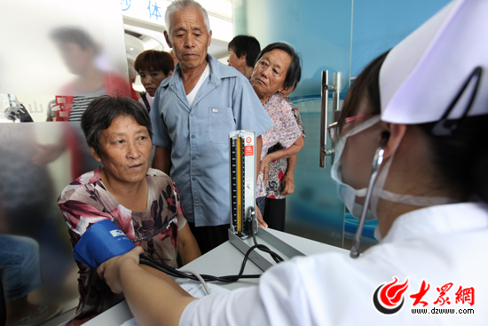 村民排隊接受血壓常規(guī)檢查。見習記者楊春衛(wèi) 攝