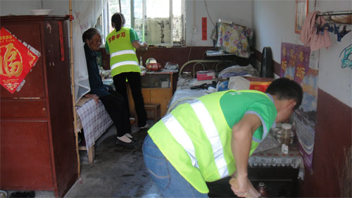 20日上午,志愿者來到本次活動的最后一站——玉山鎮敬老院,為在這里生活的50位老人打掃衛生、陪他們聊天。同學們充分發揚不怕苦、不怕累的精神,為老人們擦玻璃、拖地板、清洗紗窗,大家干得不亦樂乎。打掃完衛生,同學們還陪老人聊起了天,給他們表演節目,房間里不時傳出陣陣歡聲笑語。老人們不住地夸獎同學們。