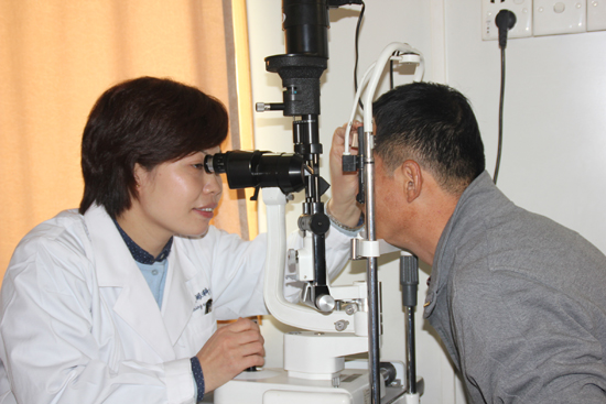 醫生正在為村民進行眼部檢查