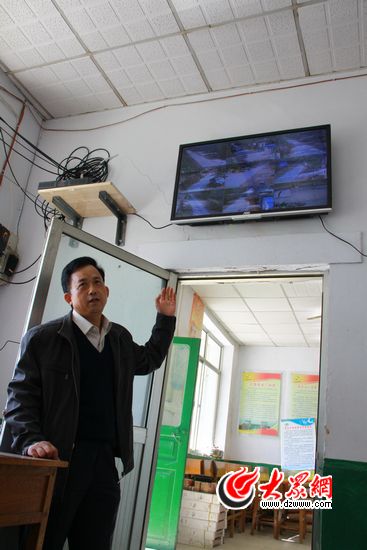 在西瓦莊村村委會的一面墻上,有一個大屏幕,從屏幕上可以看到村子主要干道的情況,這就是“第一書記”為村里安裝的監(jiān)控攝像頭。