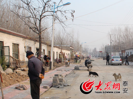 “第一書記”張銀亮為戴廟村硬化了道路,并裝上了路燈。記者采訪時(shí),此路段還在施工中。(見習(xí)記者 張璐 攝)
