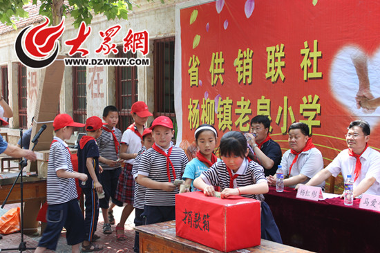 29日,臨近兒童節,泗水縣楊柳鎮老泉小學的學生們為患有再生障礙性貧血的童童捐款。