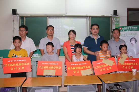活動儀式上,出席活動的嘉賓領導向山東省水利廳駐東平縣大羊鎮“第一書記”幫扶村特困留守兒童代表頒發了紅會福娃娃助學基金,幫助貧困留守兒童解決他們在成長道路上的煩惱,為他們繼續受教育提供良好的條件。截止到現在,已經有41名留守兒童接受幫扶,每名留守兒童1000元助學基金。