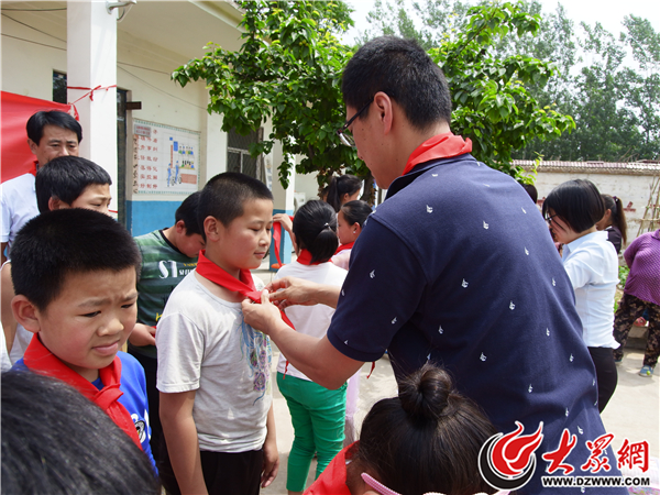 活動(dòng)中西紅廟村10名學(xué)生代表為出席活動(dòng)的各位領(lǐng)導(dǎo)佩戴紅領(lǐng)巾。莘縣團(tuán)縣委書記馮永雷在致辭中鼓勵(lì)小朋友們好好學(xué)習(xí),肩負(fù)起民族進(jìn)步,國(guó)家復(fù)興的歷史使命,同時(shí)對(duì)濟(jì)南大學(xué)駐村扶貧工作隊(duì)關(guān)心教育,關(guān)愛(ài)兒童和優(yōu)創(chuàng)數(shù)據(jù)技術(shù)有限公司的愛(ài)心善舉表達(dá)了敬佩和感謝。