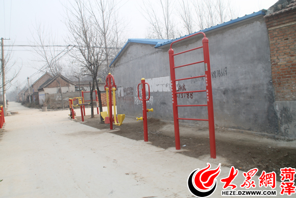 袁閣村新修建的水泥路和健身器材