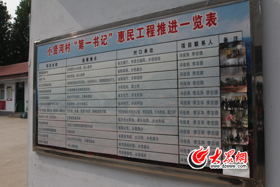 在小賢河村委會公布的“惠民工程推進一覽表”上,硬化路面、農田灌溉、通自來水等多項工程都列出了時間表。