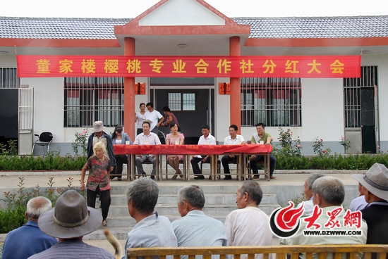 大眾網日照9月23日訊(記者 李佩強 張希嘉)“五張掉漆的木桌”、“一條劣質的條幅”、“一群踢踏著拖鞋的農民”、“一聲手機發出的最弦民族風鈴聲”、“一張張嶄新的儲蓄存單”,這些與城市完全不同的景象,是9月22日下午記者在大耳山櫻桃專業合作社的分紅大會上看到的。這個位于山東省五蓮縣叩官鎮董家樓村,以櫻桃銷售為主的合作社,在2013年經歷了一場暴風雨對櫻桃的洗劫。盡管如此,村民臉上并沒有透露出一絲愁悶,因為櫻桃仍然賣得相當好,這要歸功于“第一書記”袁志華對櫻桃電子商務化的推動。