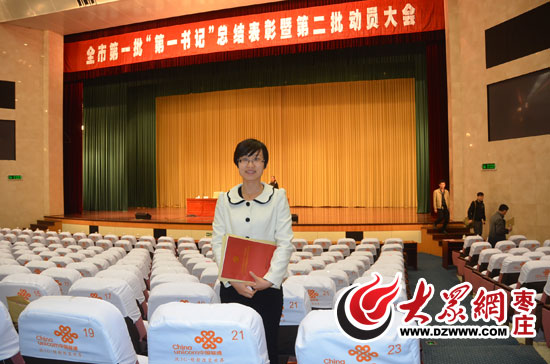 閔瑩在棗莊市第一批“第一書記”總結表彰暨第二批動員大會現場。