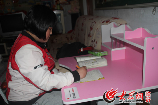 讀二年級的張馨迫不及待的用上自己的新桌椅