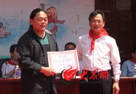 中國美協會員、青年畫家王濤接受學校聘書,承諾以后定期到學校為孩子們上美術課。