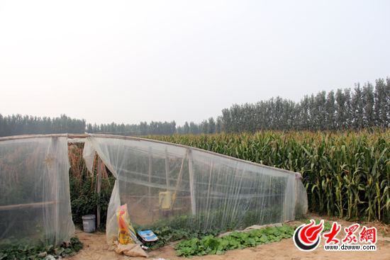 在蘆莊村,村民楊光順在玉米地上建起了蔬菜拱棚。記者 姜洋 攝