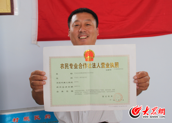 拿著合作社的營業(yè)執(zhí)照,曲學(xué)水樂得合不攏嘴。記者 滿志旺 攝