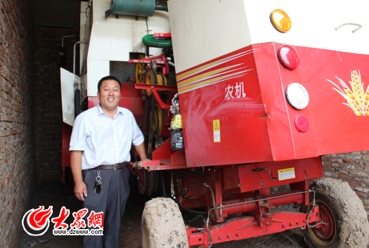 曲學(xué)水專門給聯(lián)合收割機蓋了一間“機房”。他說,這臺收割機是合作社的“開社功臣”。記者 滿志旺 攝