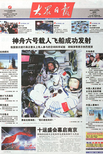 “神舟六號升空特刊”版面