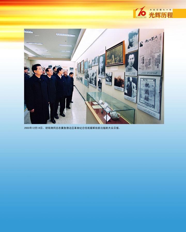胡錦濤同志在冀魯豫邊區革命紀念館觀看解放前出版的大眾日報