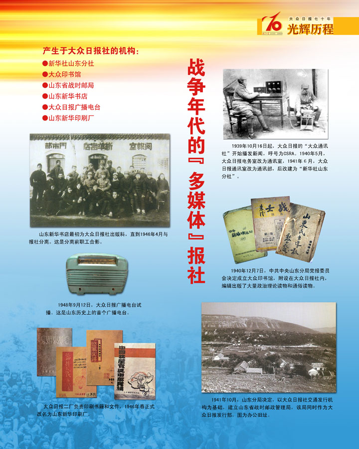 □ 許傳勤 《大眾日報》即將迎來創刊 70周年,作為一名戰爭年代為發行《大眾日報》貢獻過力量的老戰郵工作者,一名和平年代的老郵電局長,一名與《大眾日報》朝夕相伴 60多年的老讀者,心情萬分激動,往事一件件涌上心頭。 1946年4月,當時我17歲,到當時的沂蒙地區蒙山縣(現臨沂市費縣上冶鎮)戰時郵局工作。山東戰時郵局的工作方針是郵發合一、以報(《大眾日報》)為綱,郵運班期按照大眾日報的出版日期排定。那時我每天的主要任務就是送《 大眾日報》,每天一班,親投到戶。 1947年春,蔣介石集中兵力重點進攻山東解放區。當時的山東省委駐臨沂,沂蒙根據地大部分被國民黨軍隊占領。由于形勢的變化,我們由白天送《大眾日報》改為白天或夜間多人持槍到敵占區的村鎮散發,有時貼在村鎮大街墻上,有時壓在敵人經常出入的路口旁。我們提出的口號是:要叫《大眾日報》在敵人的心目中起到炸彈的作用,促使其放下武器,棄暗投明,投到人民這邊來。 對敵占區的人民群眾來說,《大眾日報》也起到了安定人心、鼓舞人民群眾斗志的作用,說明共產黨解放軍沒有被敵人消滅,永遠和人民群眾在一起。 1947年的農歷大年初一,我奉命去縣直各機關送報。那時的機關分散駐在各村,又下著大雪,我踏著地上半尺厚的積雪出發,當完成任務晚上回到住地時,棉褲已被凍得筆直打不了彎了。 1947年春的一天,上冶鎮正逢大集,我去集上散發《大眾日報》,正好遇上敵人飛機轟炸,當我走到集中心時,敵機俯沖下來,用機槍對著人群一陣子掃射。 當我回過神來,摸摸身上沒有受傷時,又爬起來繼續工作了。 隨著解放戰爭的節節勝利,形勢的好轉, 1948年春,我的工作改為分發《大眾日報》,將每天進局的《大眾日報》及時準確分發到各地。 建國后,我先后走上了郵電支局、縣郵電局、地區郵電局的領導崗位,分管報紙發行工作。上個世紀的70年代,我們提出了《大眾日報》當日到縣、次日到村的要求,郵運線路、投遞班期都作了相應調整,使大眾日報迅速準確地到達讀者手中。 在工作中我養成了每天閱讀《大眾日報》的習慣,有時開會、工作忙沒有時間看,晚上也要找時間看當日的《大眾日報》。如外出看不到,回來后也要一天天地補上,從不間斷。離休 20年來仍然如此。與朝夕相處60余年,受其影響很深,收獲很大。讀《大眾日報》使我提高了文化水平,我參加革命工作前是個認識不了幾個字的放牛娃,現在能讀書看報,還能寫個簡單小文章。讀報還讓我懂得了一些革命道理,如只有共產黨才能解放中國,沒有共產黨就沒有新中國,沒有共產黨就沒有今天的我。工作積極,對黨忠誠,服從領導,就是我的座右銘。 離休后,外出參加活動的機會少了,但是通過讀報仍然獲得了大量的訊息。一天不看報,就覺得頭腦空虛。 我家孩子曾經問我:“ 爸,你怎么知道的事情這么多?”我回答:“都是從報紙上看來的。”
