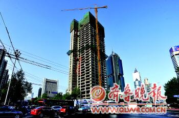 已經封頂的大眾傳媒大廈。本報記者徐延春攝