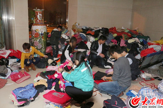 志愿者是活動的中堅力量,先后有1339名志愿者加入進來,晝夜分揀、整理衣物。壽光市海潔水洗店主動無償承擔起了洗滌和消毒工作,連續(xù)一個多月來,他們每天晚上加班到凌晨。市健元春有限公司無償捐助1300個編織袋裝盛衣物,山東凱馬汽車制造有限公司義務(wù)把1萬余件愛心衣物運到貴州。