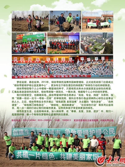 綠色改變生活,公益影響未來。在“奉獻、友愛、互助、進步”中,我們一起愛綠護綠,做一個有綠色夢想和公益情懷的志愿者,為共建“美麗淄博”堅持奮斗!
