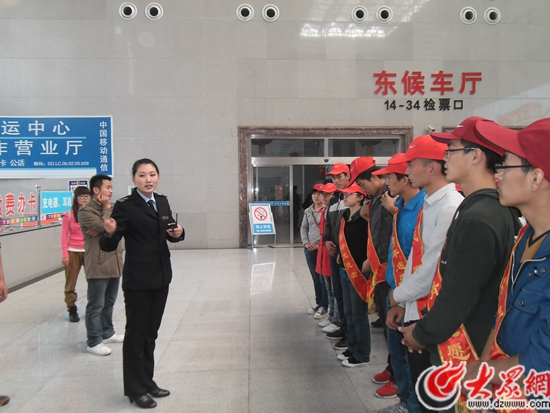 為了讓當(dāng)代大學(xué)生更好地體會(huì)到服務(wù)他人的精神。每個(gè)月都會(huì)在學(xué)校宣傳、組織人員積極去汽車總站參加志愿服務(wù)活動(dòng)。在淄博汽車總站,志愿者主要工作有兩塊:一是在檢票處進(jìn)行崗位體驗(yàn),解決乘客的疑惑;二是通過(guò)愛心小車幫助旅客運(yùn)送行李包裹,并幫助乘客將行李妥善的搬運(yùn)到車上,從而在實(shí)踐中體驗(yàn)奉獻(xiàn)的快樂(lè)與滿足感。