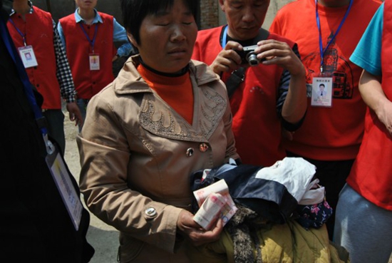 曹玲玲, 14歲,軍屯戚姬村,今年上五年級,孤兒,出生15天左右由養父(她現在的大爺)在外打工時撿到的,撫養至今,品學兼優,連年被評為三好學生。現在她大爺已經失去聽力,無勞動能力了,因未辦理領養手續曹玲玲至今沒有戶口。