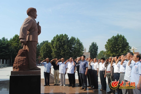 雷鋒同志生前所在團的14名戰友來到長清區歸德鎮雷鋒廣場共同紀念雷鋒。