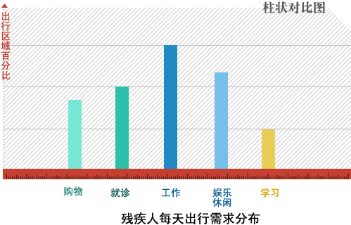濟南市綜合交通調查的最新數據顯示,與一般想象不同的是,多數殘疾人每天都有一定的出行需求,三分之二的殘疾人會有每天出行的習慣。殘疾人的出行目的中,比重最大的是工作出行,占到總體出行的70%以上;其次為娛樂休閑出行、就醫就診出行、購物出行、學習出行。[詳細]