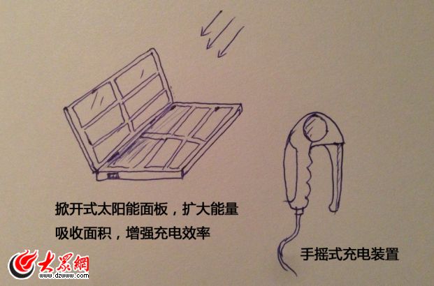 目前市面上的移動電源,本身需要接數(shù)據(jù)線充電,而本產(chǎn)品面板自帶太陽能面板,可隨時為移動電源充電,另外還有小型手搖外接充電裝置,在沒有任何外部電力的情況下可手動為移動電源充電,是一款適合戶外運(yùn)動的新型移動電源產(chǎn)品。當(dāng)然,在正常有電環(huán)境時,該產(chǎn)品也可使用常規(guī)的充電接口進(jìn)行充電。