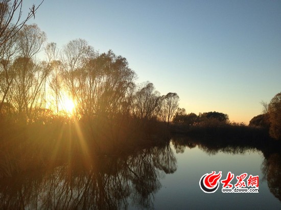 蘆葦、夕陽和河道構成一幅美麗的畫卷。記者 劉明明 攝