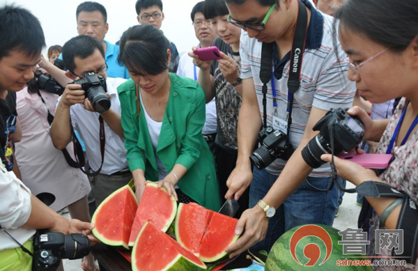 魯網(wǎng)6月18日訊(記者 劉梅婷)今天下午,“聚焦美麗山東——第九屆中國網(wǎng)絡(luò)媒體山東行”采訪團(tuán)抵達(dá)聊城市匯隆無公害瓜菜合作社,領(lǐng)略這里現(xiàn)代農(nóng)業(yè)的風(fēng)采。眼下正是西瓜上市的時(shí)節(jié),在聊城經(jīng)濟(jì)開發(fā)區(qū)許營鎮(zhèn)姚莊村,隨處可見的“許營西瓜”成了搶手貨。田間地頭林立的西瓜收購點(diǎn)和排成長龍的運(yùn)瓜車,讓村民心里樂開了花。