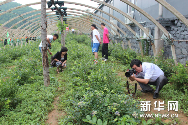 采訪團(tuán)記者走進(jìn)藍(lán)莓種植基地