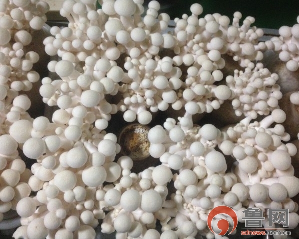 魯網(wǎng)11月19日訊(記者 劉梅婷)今天上午,“品味山東——全國名博齊魯行”采訪團來到位于東營廣饒縣花官鎮(zhèn)的一家食用菌公司生產(chǎn)車間內(nèi),一排排高高的鐵架子上擺滿了已全部變白的菌棒,菌棒外的塑料口袋齊刷刷地張口開著,一個個白色的小拇指肚大小的白玉菇你爭我搶地冒了出來。公司董事長封金華笑著說:“你瞧,這些食用菌生長所用的‘土壤’,都是周圍農(nóng)戶廢棄的農(nóng)作物秸稈。”