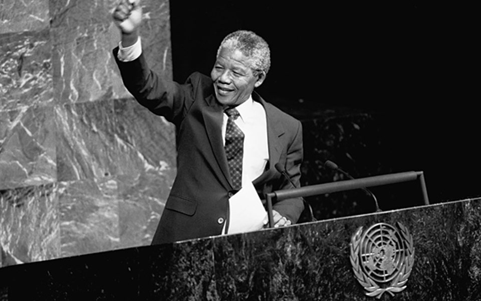 1990年6月22日,紐約聯合國總部,南非反種族隔離領袖、南非非洲人國民大會(ANC)主席曼德拉發表演講,獲得掌聲。曼德拉呼吁聯合國維持對南非的制裁,直到種族隔離制度被廢除。1991年,他與南非總統德克勒克一起獲得了聯合國科教文組織頒發的"烏弗埃-博瓦尼爭取和平獎";1993年10月,曼德拉與德克勒克一起榮獲"諾貝爾和平獎"。
