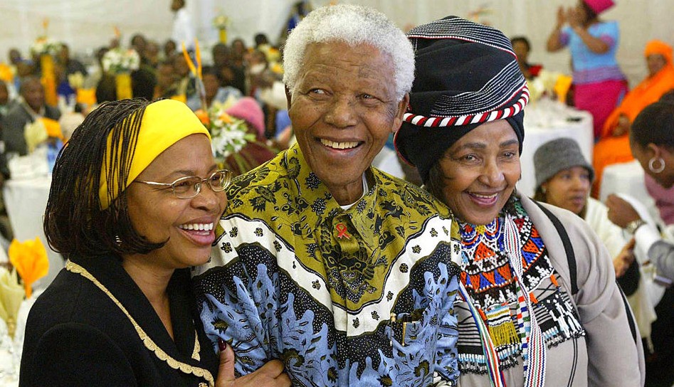 與前妻溫妮離婚后不久,1996年,在法國巴黎的一次正式宴會上,曼德拉一語驚人:“我再次墜入了愛河,連我自己都沒想到。”在眾人驚愕的目光中,曼德拉公布了與莫桑比克前總統馬歇爾遺孀格拉薩的戀情。1998年7月18日,曼德拉80歲生日那天,53歲的格拉薩成為曼德拉的新娘。圖為2004年7月18日,曼德拉與妻子格拉薩(左)和前妻溫妮(右)在86歲生日聚會上。