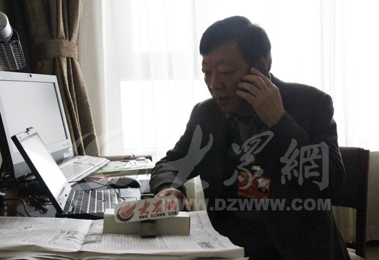 3月3日,在赴北京參加全國(guó)兩會(huì)的火車上,陳德展仍在分析王和新提出的“百姓提案”(大眾網(wǎng)特派記者王磊 攝)