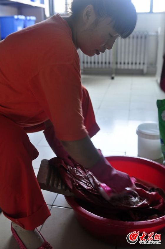 來自沂南的王思芹在隊里洗衣服。丈夫在隊里干活,孩子在普吉路小學念書,一家人的生活很美滿 王琨 攝
