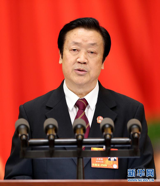 3月10日,十二屆全國人大一次會議在北京人民大會堂舉行第三次全體會議。最高人民法院院長王勝俊作最高人民法院工作報告。 新華社記者 丁林攝