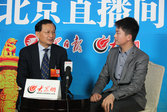 全國人大代表、青島啤酒集團(tuán)股份有限公司董事長孫明波做客大眾網(wǎng)北京直播間。(大眾網(wǎng)特派記者 攝)