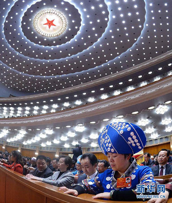 3月14日,十二屆全國人大一次會議在北京人民大會堂舉行第四次全體會議,選舉第十二屆全國人民代表大會常務委員會委員長、副委員長、秘書長;選舉第十二屆全國人民代表大會常務委員會委員;選舉中華人民共和國主席、副主席;選舉中華人民共和國中央軍事委員會主席。這是代表在表決。新華社記者 李濤 攝