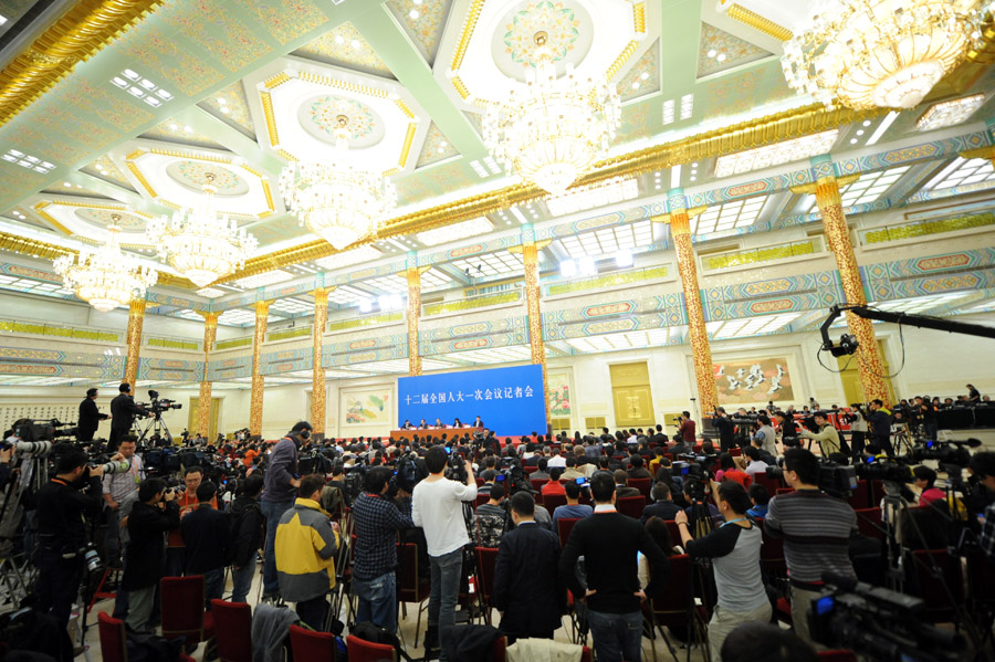 3月9日,十二屆全國(guó)人大一次會(huì)議舉行記者會(huì),外交部部長(zhǎng)楊潔篪就“中國(guó)的外交政策和對(duì)外關(guān)系”答中外記者問(wèn)。這是記者會(huì)現(xiàn)場(chǎng)。新華網(wǎng)/中國(guó)政府網(wǎng) 陳競(jìng)超 攝