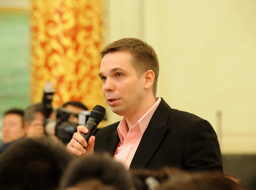 3月9日,十二屆全國人大一次會議舉行記者會,外交部部長楊潔篪就“中國的外交政策和對外關系”答中外記者問。圖為俄羅斯報記者提問。新華網/中國政府網 翟子赫 攝