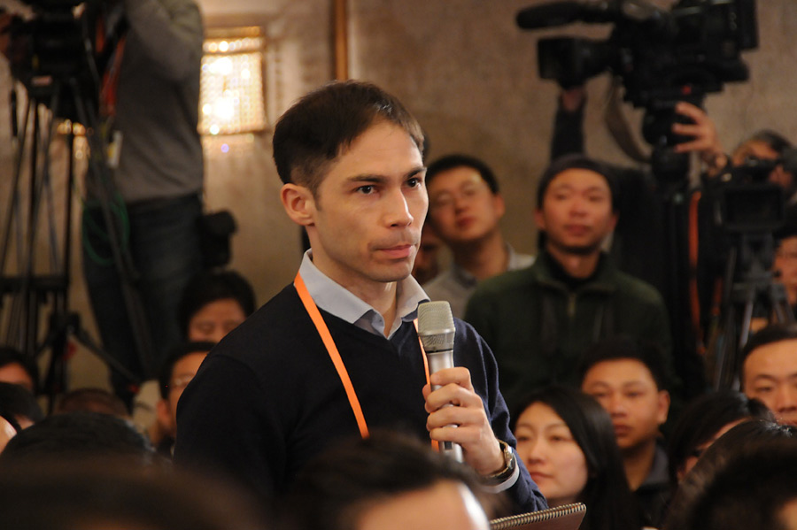 3月4日,十二屆全國(guó)人大一次會(huì)議在人民大會(huì)堂一層新聞發(fā)布廳舉行新聞發(fā)布會(huì),由大會(huì)發(fā)言人就會(huì)議議程和人大工作相關(guān)的問(wèn)題回答中外記者的提問(wèn)。圖為路透社記者提問(wèn)。新華網(wǎng)/中國(guó)政府網(wǎng) 翟子赫 攝