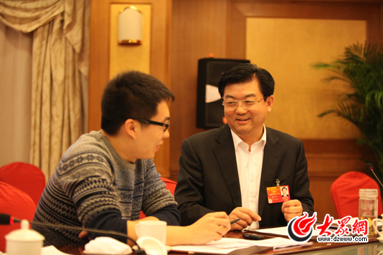 全國人大代表、濰坊市委書記許立全在接受大眾網(wǎng)記者專訪。