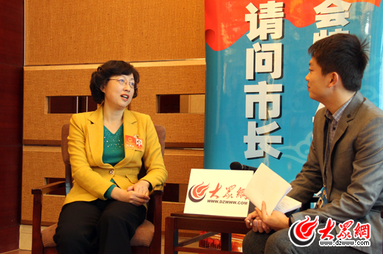 省人大代表、威海市委副書記、市長張惠接受大眾網記者專訪。(盛堃 攝)