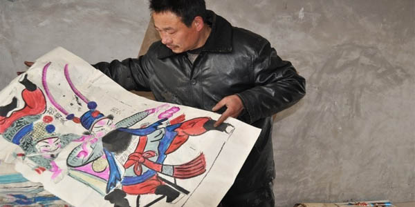 魚臺木版年畫是齊魯民間藝術寶庫中的一朵奇葩,文化寓意深厚,有手繪、木版套印、木印填色三種,以線條粗獷、色彩絢麗、造型簡練、構圖飽滿、裝飾性強為特色,裝飾手法以丹作底色,色彩強烈富麗,人物衣飾上的花紋用線條流暢的寫金描銀渲染,俗稱“寫花”,極富民間畫的韻味,為其他地區民間年畫所罕見。它創始于唐代,在明清得以繁榮和發展,“家家點染,戶戶丹青”是當時魚臺木版年畫繁盛的寫照。