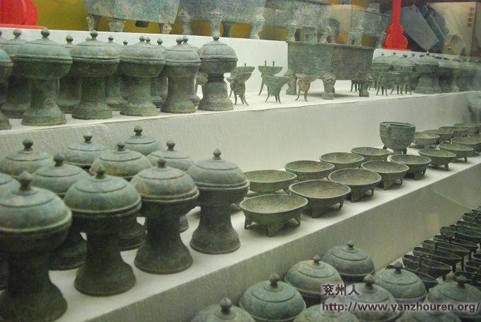 周代文化遺物出土較多,有代表性的主要是連檔鬲、細(xì)腰簋、束腰豆、獸足鼎等,粗繩紋飾,多系葬品,放置的規(guī)律,其次序常為鬲、罐、豆、簋,或鬲、盆、豆,或鬲、盆、罐。奴隸主貴族多用青銅器,一般人用陶器。